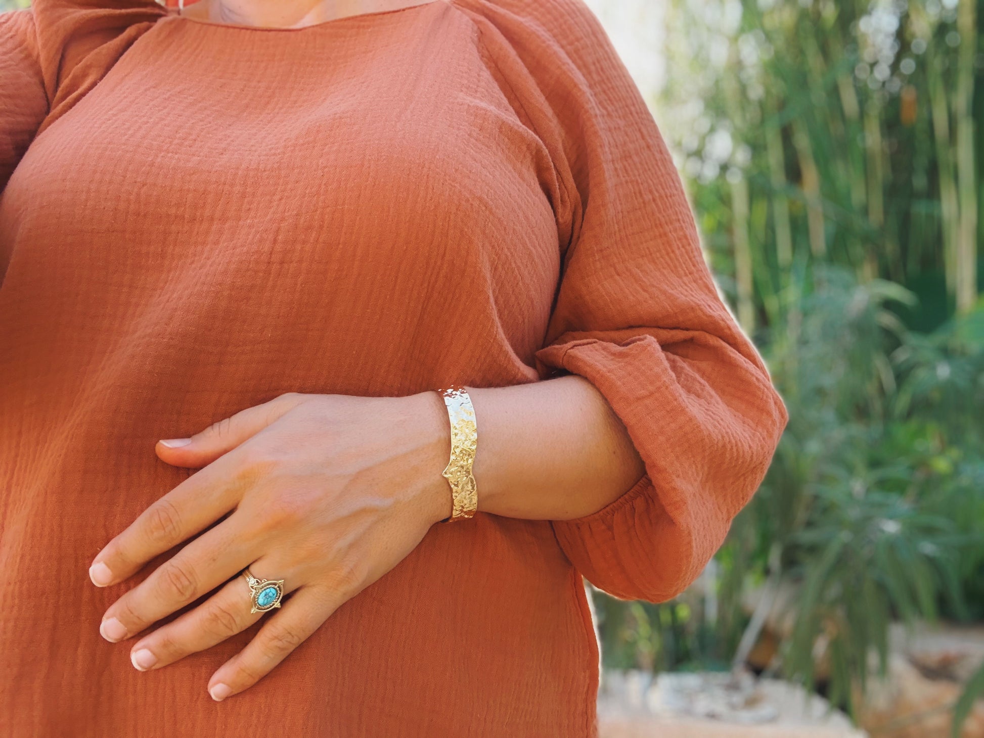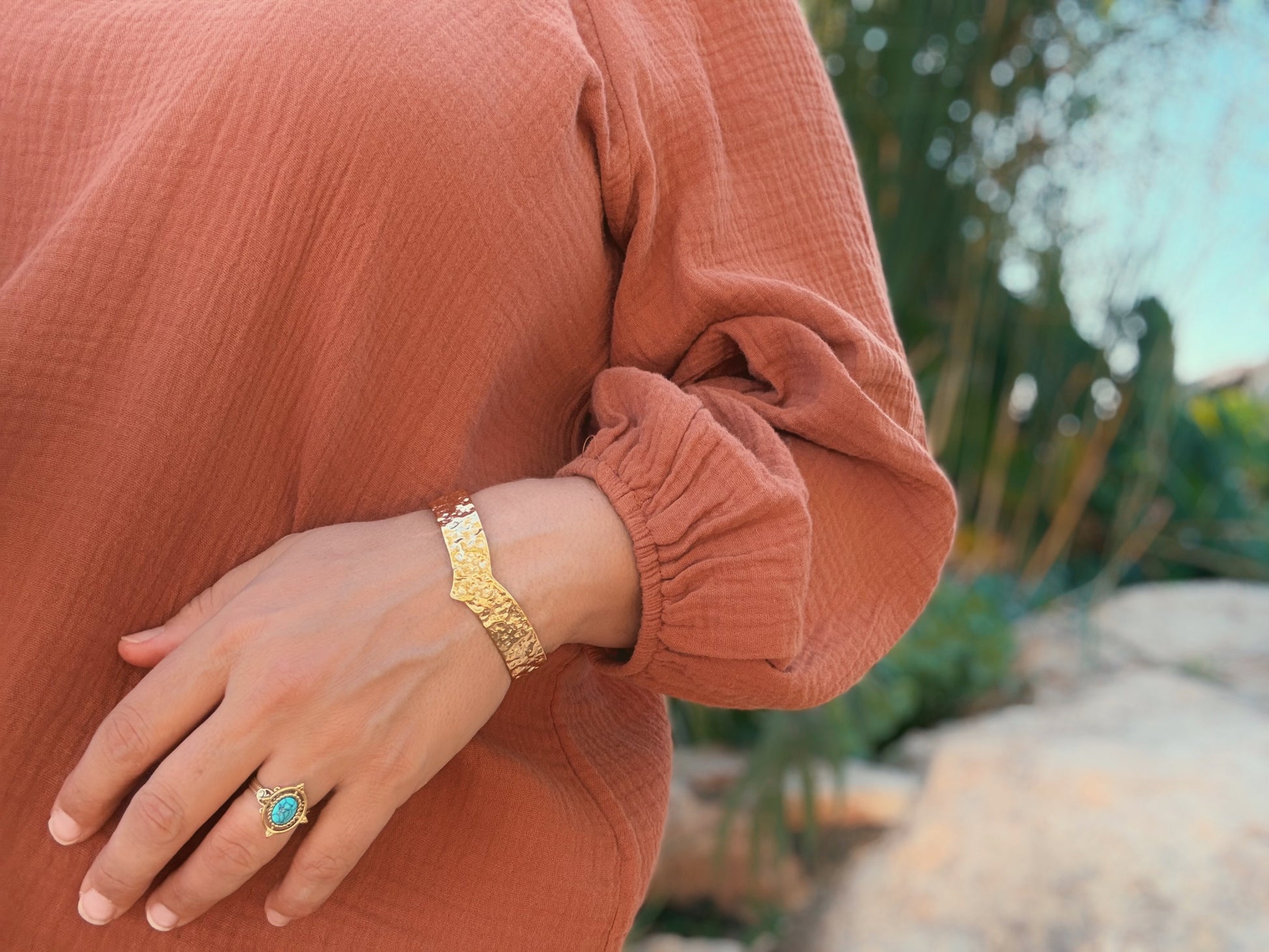 עשוי מגולדפילד איכותי ועמיד במים. מידת הטבעת ניתנת לכיוון.