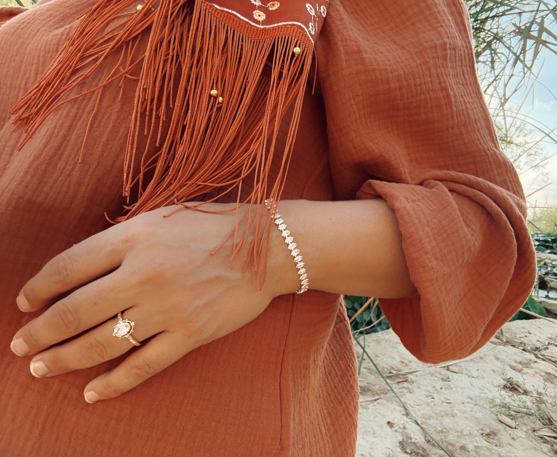 אנא שימו לב, על פריטים בציפוי זהב לא חלה אחריות. הציפוי רגיש למים ועלול גם להגיב עם הרכב העור, דבר שעלול לפגוע בו. לכן איננו יכולים להבטיח את עמידות הציפוי.