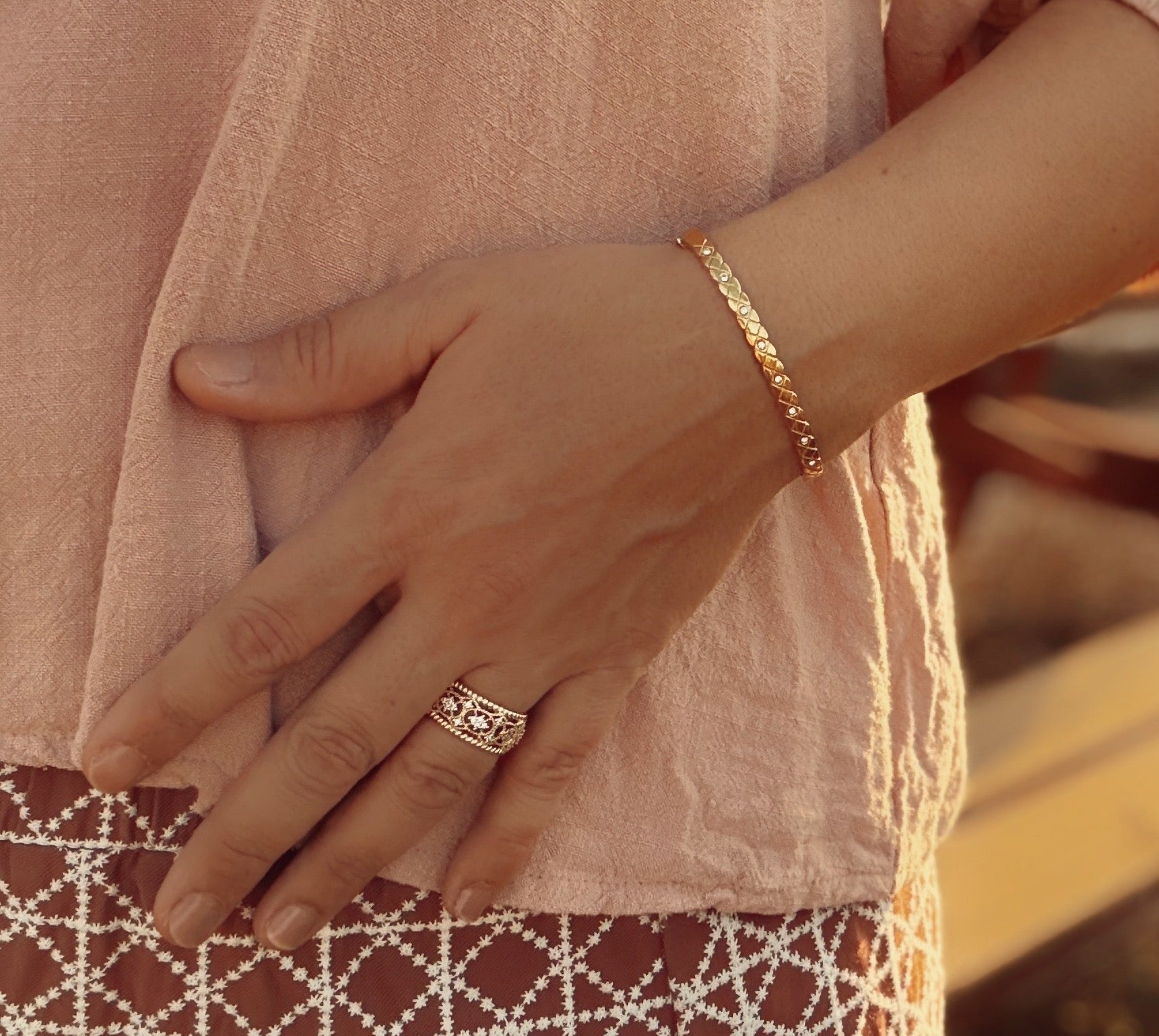 אנא שימו לב, על פריטים בציפוי זהב לא חלה אחריות. הציפוי רגיש למים ועלול גם להגיב עם הרכב העור, דבר שעלול לפגוע בו. לכן איננו יכולים להבטיח את עמידות הציפוי.