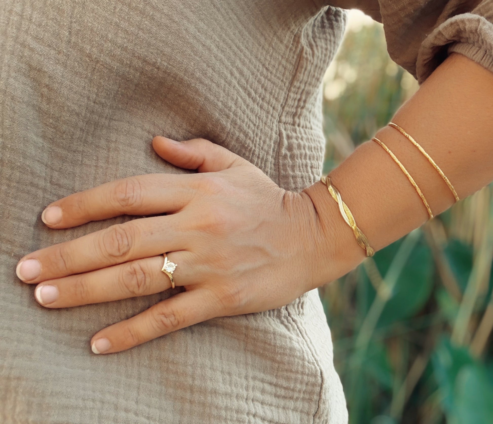 הטבעת עשויה מציפוי זהב איכותי, המידה מתכווננת ומומלצת למידות 7–8