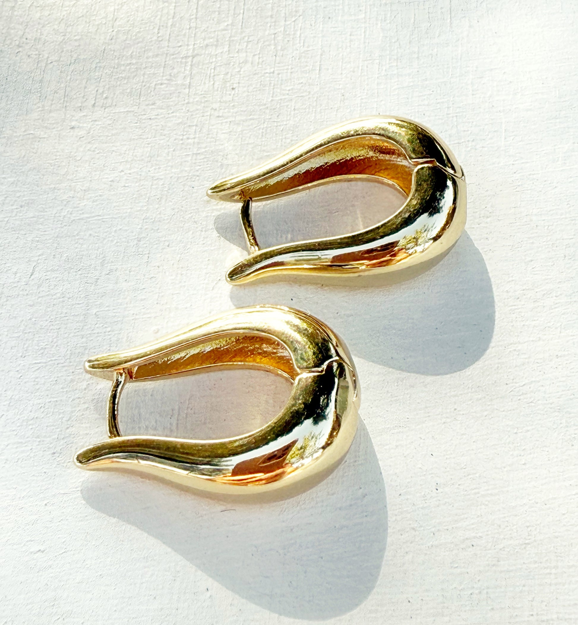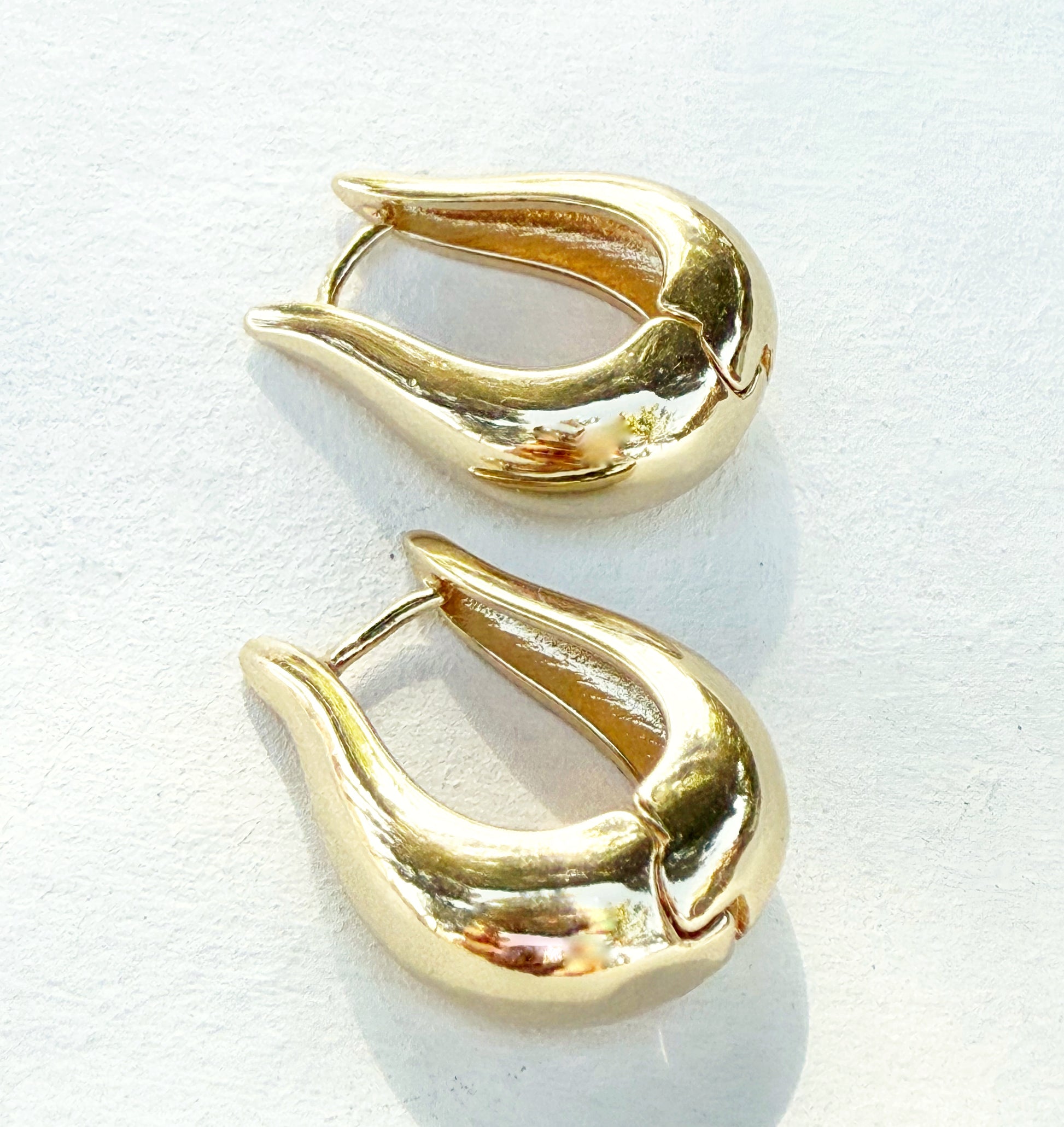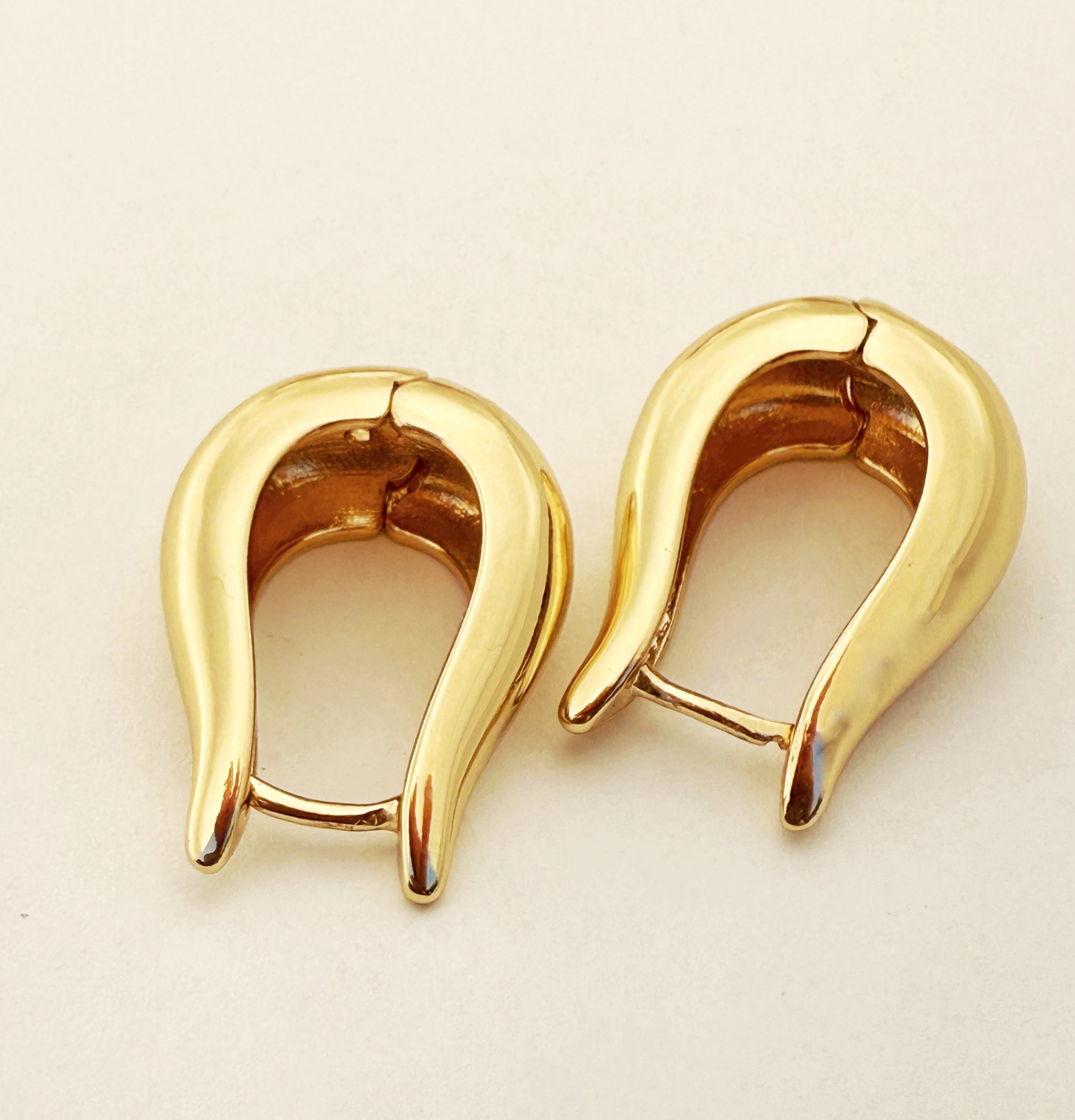 הקווים הרכים והמעוגלים יוצרים תחושה של הרמוניה טבעית ושקט. אלו עגילים שאינם צועקים, הם מדברים בשקט, אך בביטחון. יש בהם משהו גופני וטבעי מאוד, כמו זיכרון של אביב שבוודאי יגיע.
