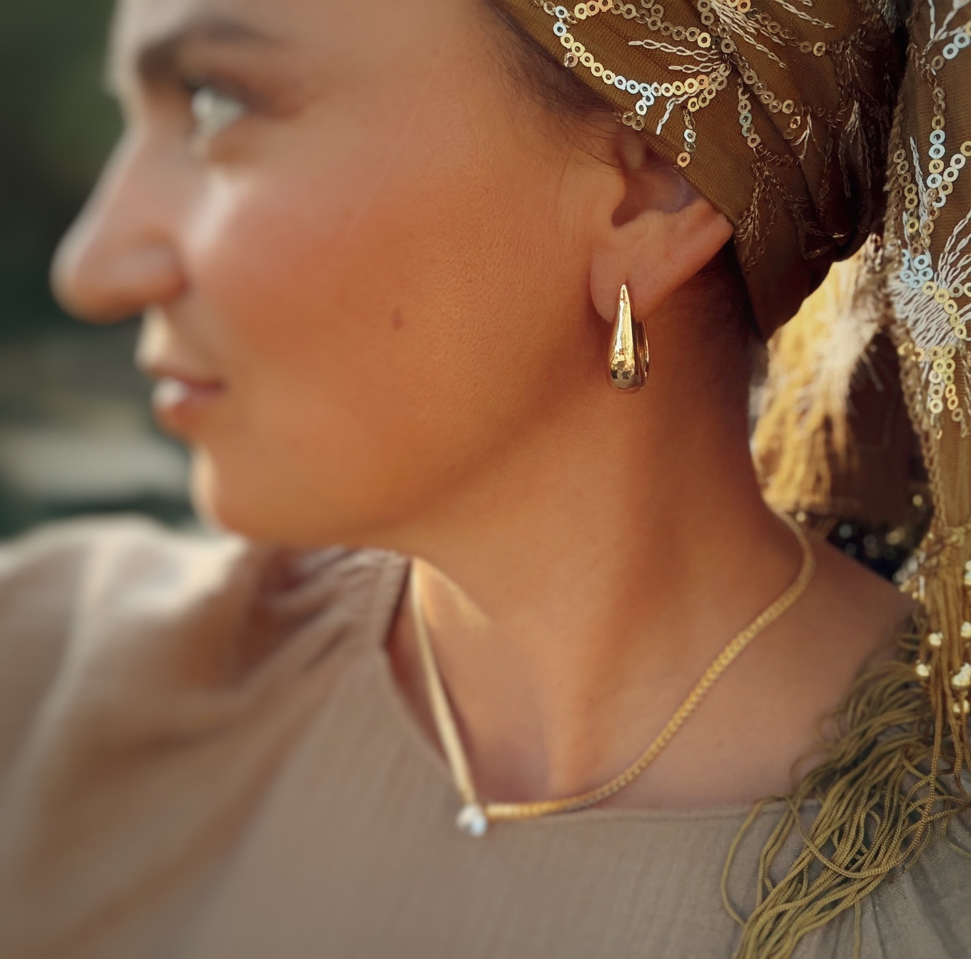 עגילי יפעת מזכירים פקעות של צבעונים, הרגע שלפני הפריחה, כשהצורה כבר מלאה חיים, אך הסוד עדיין שמור.