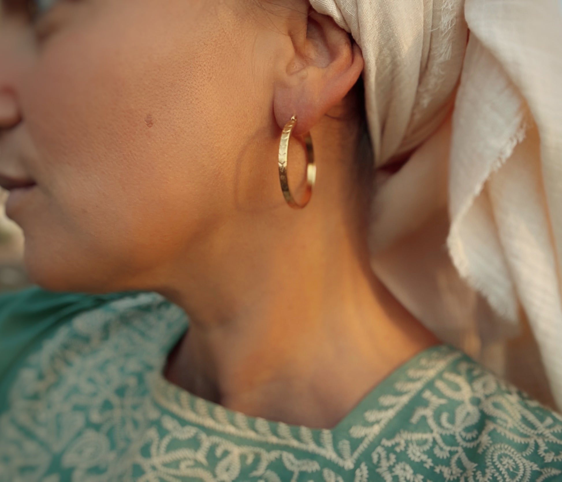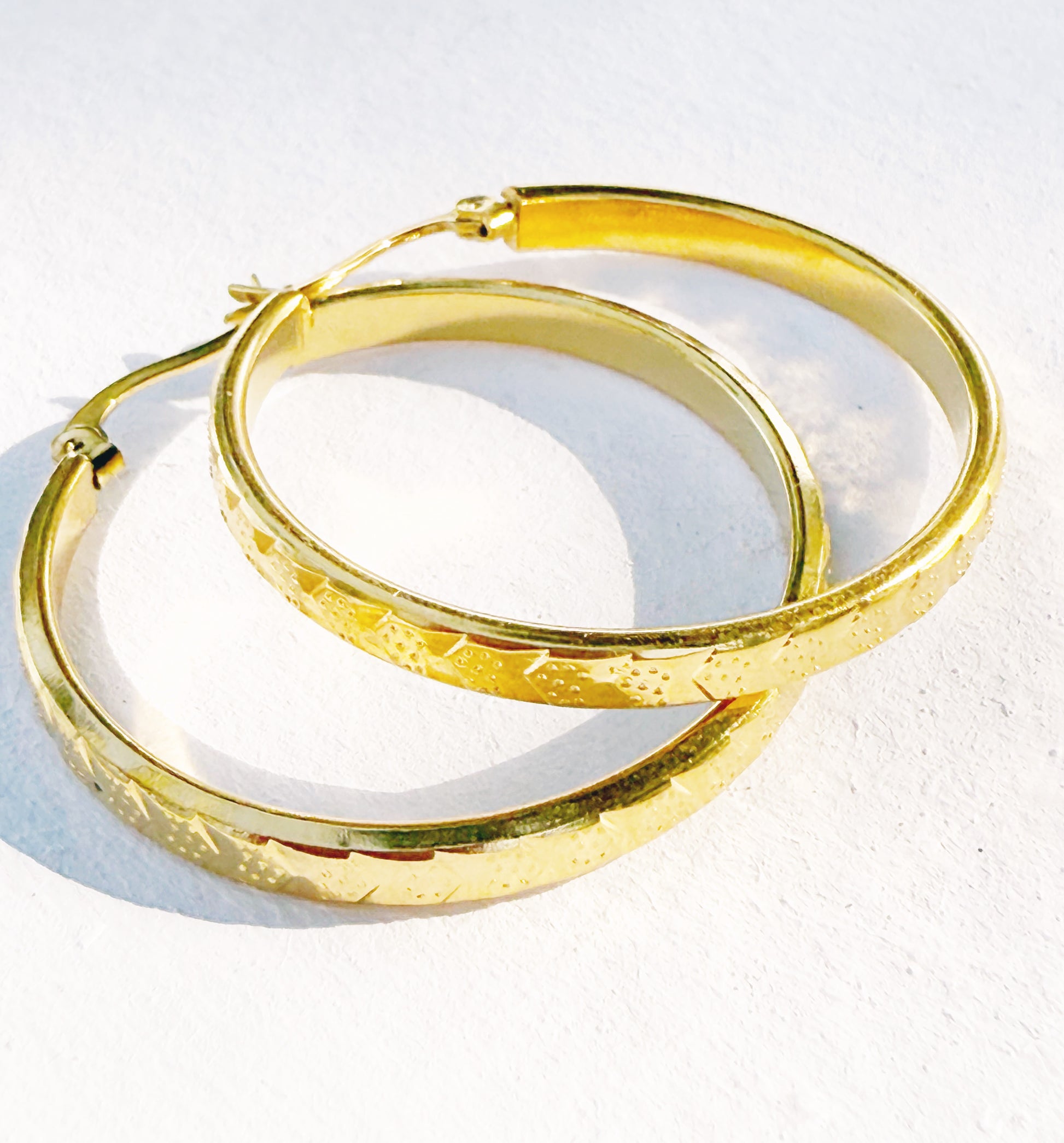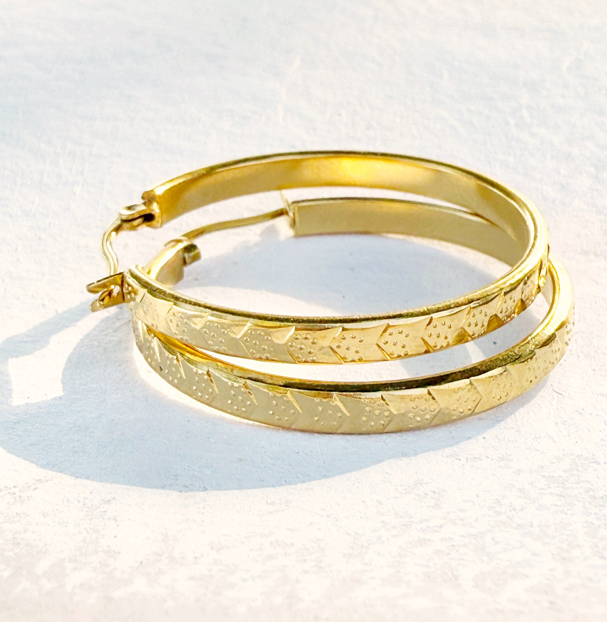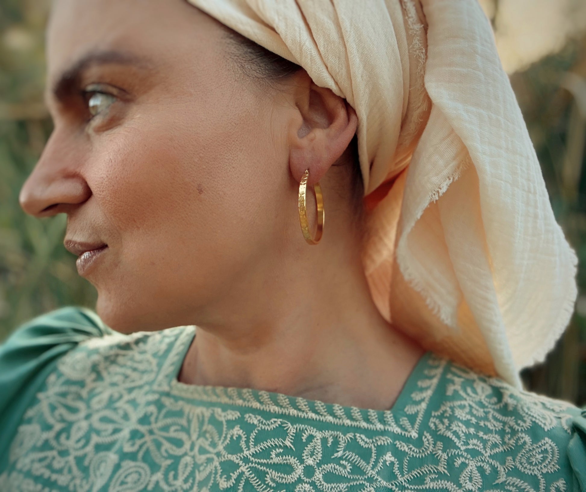 עגילים עם טקסטורה מחושלת, עשויים מגולדפילד איכותי במיוחד.